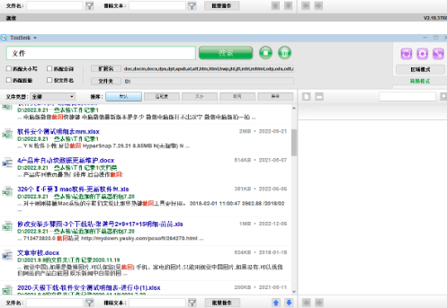 区别于传统检索工具的单维度搜索,TextSeek构建了三维检索矩阵:在垂直维度支持PDF、Word、Excel等12种办公文档格式的深度解析;在横向维度实现文件名称、元数据、正文内容的全字段覆盖;在时间维度采用增量索引技术,确保新增文档即时可查。经第三方测试机构验证,其查全率达到99.7%,查准率高达98.9%。