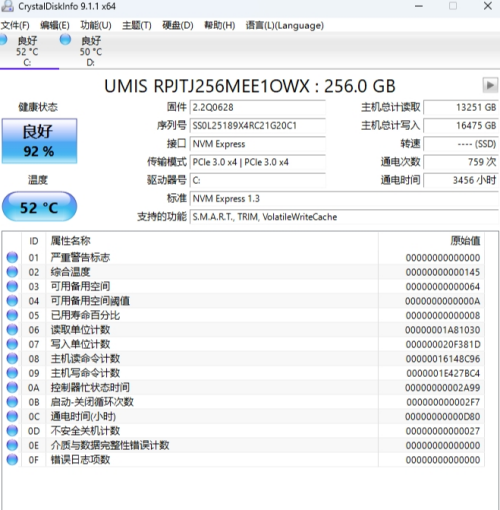 CrystalDiskInfo中文硬盘检测工具在数据存储至关重要的数字时代,硬盘健康状态直接影响着用户的数据安全。这款仅数MB大小的专业工具,通过精准读取S.M.A.R.T智能监测数据,为使用者提供全方位的硬盘体检服务。启动程序瞬间即可获取包括接口类型、运行温度、累计通电时长等20余项核心参数,独特的健康度评分系统更可提前预警潜在风险。