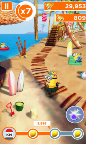 动态视角切换系统让跑酷过程更具临场感,随机触发的趣味小游戏带来意外惊喜。通过收集香蕉解锁巨型化形态,可触发特殊破坏效果。骑乘独角兽坐骑可提升收集效率,火箭飞行模式带来高空滑翔新体验,定期更新的月面关卡考验玩家操作技巧。
