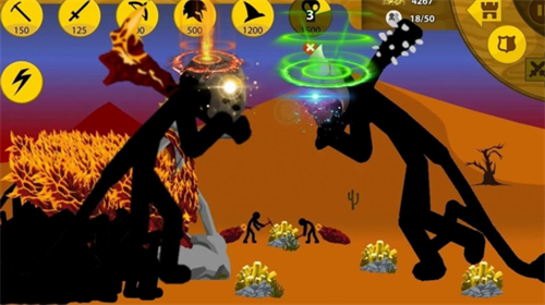 火柴人战争金巨人免费版以独特的金色战士形象和烧脑策略玩法为核心,玩家将统领闪耀着金属光泽的黄金军团,在沙盘式战场中展开多维度对抗。游戏采用即时操控机制,玩家需实时调配矿工采集资源、训练弓箭手构筑防线、指挥巨人冲破敌阵,每个决策都将影响战局走向。