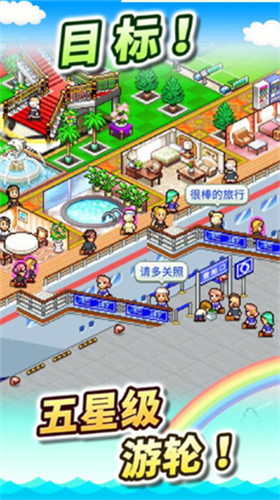 豪华大游轮环游世界模拟经营之旅是一款充满创意的航海主题模拟手游,游戏以清新明快的像素画风打造出令人耳目一新的海上世界。玩家将化身游轮管理者,通过精心规划航线、升级船体设施、满足游客需求等多元化操作,逐步打造出备受国际认可的超五星级豪华游轮。