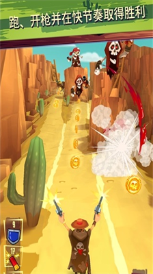 荒野跑酷射击英雄与场景全解将西部冒险与动作闯关巧妙融合,玩家在立体场景中既能体验高速移动的畅快感,又能感受精准射击的策略性。游戏采用电影级光影渲染技术,真实还原19世纪美国西部地貌特征,从荒漠峡谷到淘金小镇,每个场景都暗藏战术机遇。通过积累战场资源可解锁二十余种历史经典枪械,七位专属牛仔角色各自携带独有战术技能,合理搭配将成为制胜关键。