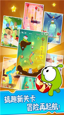 割绳子2免费畅玩版作为经典益智游戏的续作,延续了系列独特的2D卡通美学风格。从晶莹剔透的糖果到圆滚滚的小绿怪奥姆,每个元素都经过精心打磨,高饱和度的色彩搭配营造出童话般的视觉盛宴。游戏在保留核心玩法的基础上,新增了水果超市、沙漠大坝等主题场景,超过280个创意关卡带来持续新鲜感。