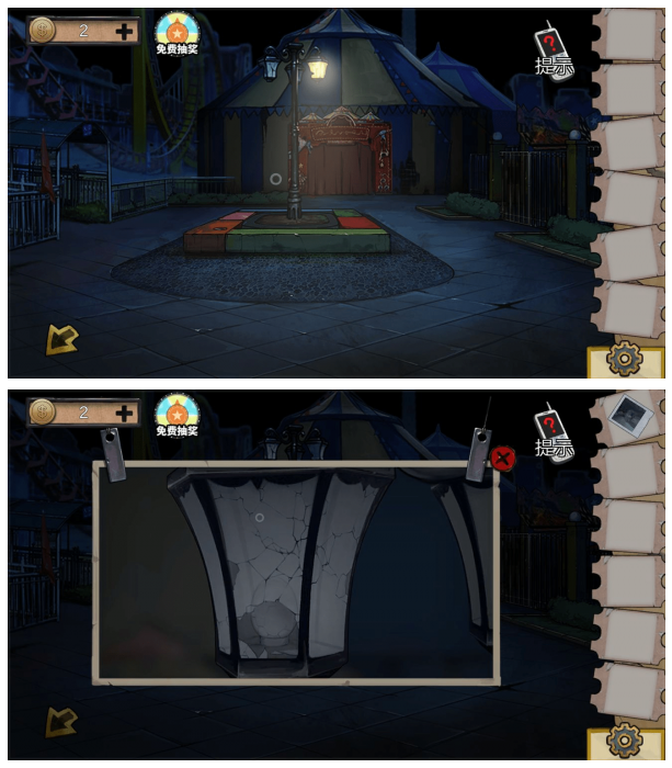 点燃天使雕像内的蜡烛将触发时间谜题,组合获得的钟表碎片可显示07:15的关键时刻。马戏团帐篷内的机关需要利用钳具开启,通过切割绳索获取重锤后,可破坏地面裂缝取得升降装置组件。