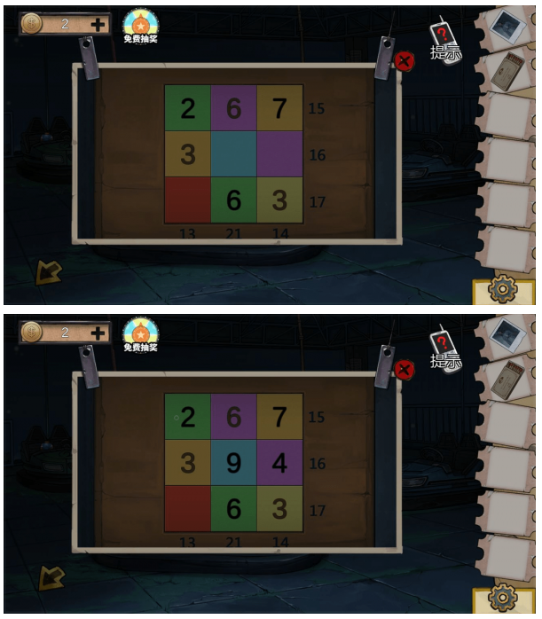 碰碰车区域的数独谜题需要结合先前获得的拼图信息进行破解,在绿色载具旁的木箱完成数字填充可获得重要道具。将收集到的彩色亮片嵌入鬼屋大门,根据摩天轮灯光的颜色序列进行排列即可开启通道。