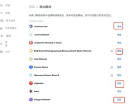 第二步:在展开的网络管理面板中,可见已整合的二十余条公链选项。若需添加特定生态网络,可通过搜索框精准定位,系统会自动匹配网络参数配置。