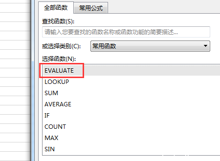 点击公式编辑栏左侧的fx图标,在弹出的函数选择器中输入"evaluate"进行精准筛选,确保选择正确的函数版本。