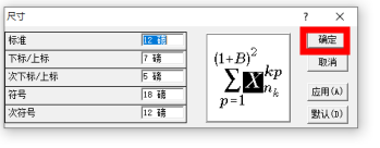 4、完成参数调节后,建议在预览窗口核对公式显示效果,确认无误后点击应用按钮。重要文档操作时,可通过「设为默认值」功能保存当前配置,避免重复设置;