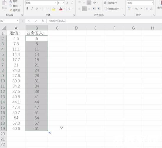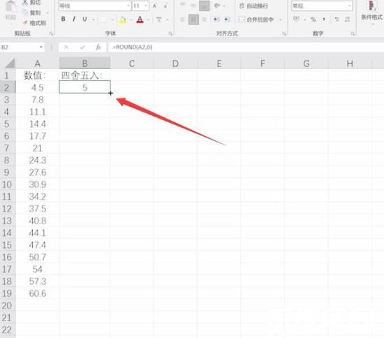 2、选定待处理数值所在单元格地址,输入半角逗号分隔参数,数字0代表精确至整数位。若需保留两位小数则输入2,系统将依据指定位数自动进行四舍六入五成双运算,确认参数后按Enter执行计算