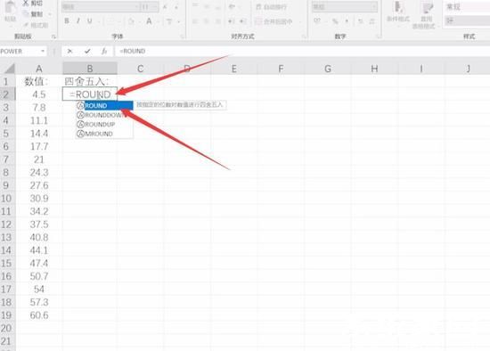 1、启动Excel创建新文档,定位目标单元格后输入=ROUND(,此时系统将自动弹出函数提示框,双击选择完整函数表达式
