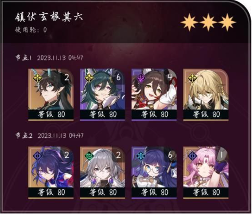 2. 后场组合需通过停云与驭空的技能联动维持能量循环,饮月君的爆发时机建议选择在驭空增伤叠加至3层时释放。罗刹的治疗技能建议保留用于应对群体AOE阶段。