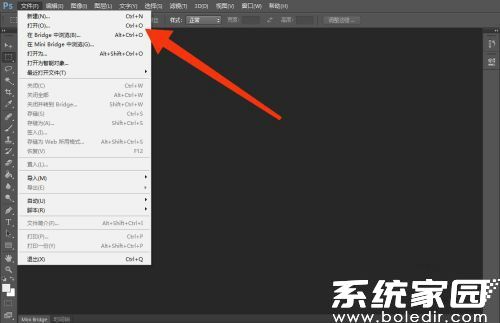 1、启动Photoshop应用程序后,通过顶部导航栏选择"文件"菜单,在下拉面板中选取"打开"选项。