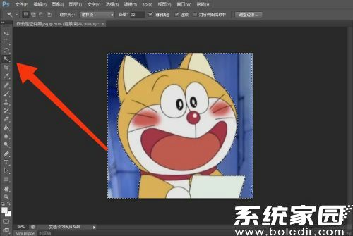 4、在左侧工具栏选取魔棒工具(快捷键W),根据背景复杂度调整容差值(建议20-30),按住Shift键进行多区域加选,确保完整选取背景区域。